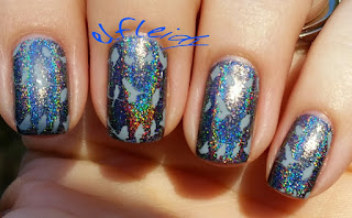 Yesterday's mani was for #clairestelle8april water prompt. I chose to do a sunlight on water look, and CbL Amoebas Contain Tiny Spacemen was the perfect base for it. The stamping came from Sugar Bubbles 021, stamped in MdU sky blue.
