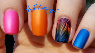 Here is this week's 40GNAI mani. The main prompt was using 3 shades of red/orange; my personal prompt was fan brush nail art. This is my second attempt at using a fan brush for nail art. My first attempt was 2 and a half years ago, and rather disasterous.