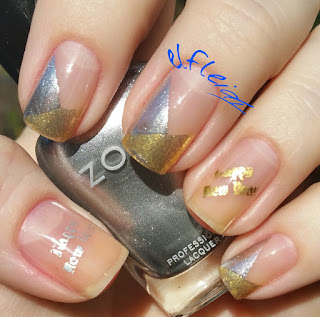 Last Monday's PAA Mani Monday prompts were silver/gold only and/or negative space. This is what I came up. Both colors are Zoyas, the gold being Kerry, the silver Trixie. The Happy New Year image was from Infinity Nails 79, stamped in MdU silver and gold.